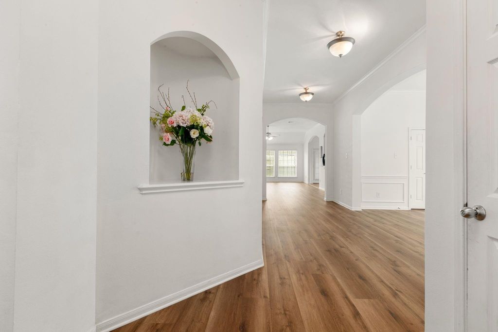 Welcome to this charming 4-bed, 2-bath home with classic red brick appeal, a welcoming covered front porch, new roof/floor (2024), water softener & fresh interior paint. Step inside to a formal dining room with vaulted ceiling to the right.The spacious living room, filled with natural light, offers a cozy setting for family time, movie nights, or gatherings with friends.The kitchen features granite countertops, stainless steel appliances, a center island, & a breakfast bar that opens to a bright breakfast area—perfect for morning coffee or casual meals. The private primary suite includes a soaking tub, walk-in shower, dual vanities, and a makeup area.All bedrooms are generously sized for comfort & flexibility. Outside, the fully fenced backyard offers a covered patio perfect for outdoor activities. Zoned to Lamar CISD with a LOW TAX RATE , easy access to Richmond Pkwy, I-69, and Hwy 90. Just minutes from Brazos Town Center.This move-in ready home has everything you've been looking fo