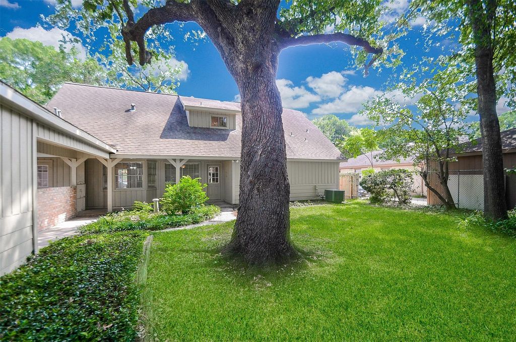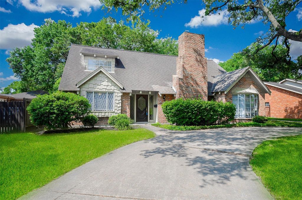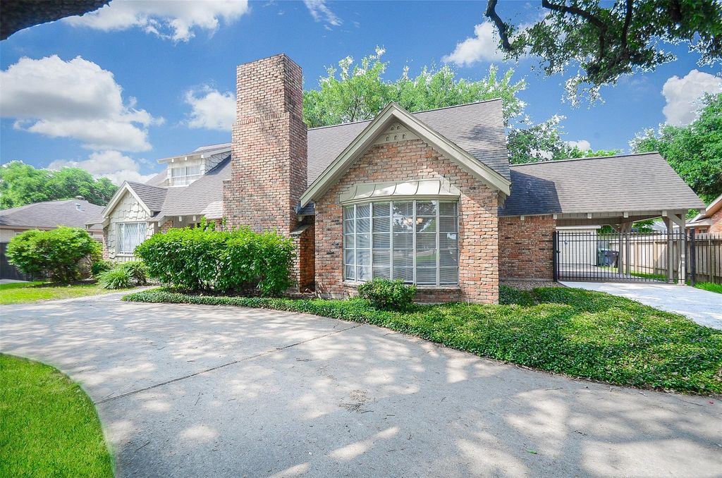 Skip apartment living and step into this beautiful home with standout curb appeal and a circular driveway. A gated motor court offers covered parking plus a detached three-car garage. Inside, enjoy an open living space with high ceilings, wood laminate and tile flooring, neutral tones, and a brick accent fireplace. This 4-bedroom, 2.5-bath layout features two bedrooms downstairs and two upstairs for added flexibility. Bathrooms are fully updated with new fixtures, lighting, and finishes. The formal dining room with bay window and updated kitchen make entertaining easy. Additional highlights include a large utility room, guest half bath, and a spacious fenced backyard with mature shade trees. A must see home with style and function!