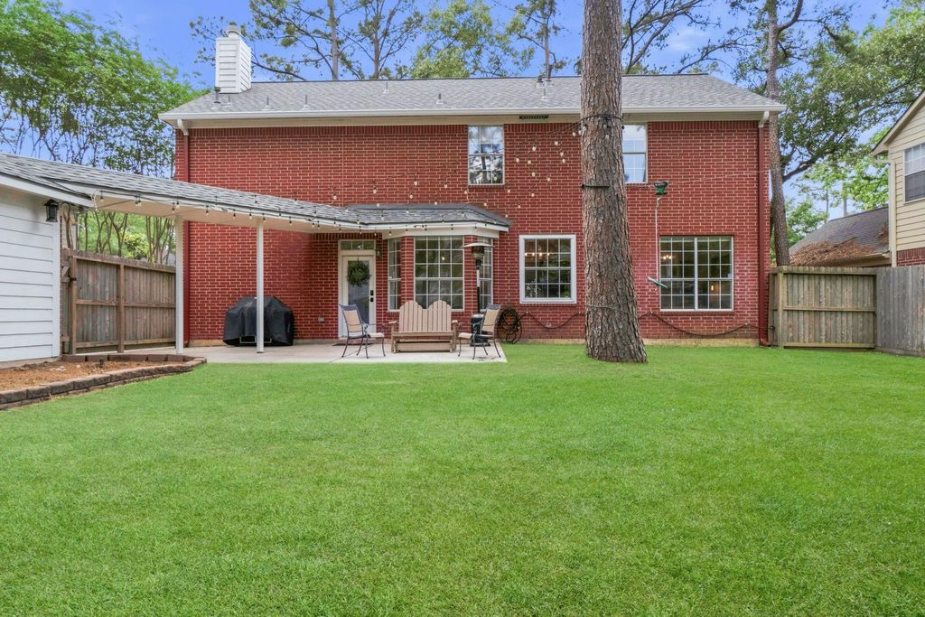 This exquisite home has been thoughtfully reimagined from top to bottom, showcasing refined upgrades including fresh paint and new flooring throughout. Striking blue decorative tile enhances wet areas, while elevated finishes include new baseboards, shutters, blinds, valances, lighting, and door hardware. The expansive primary suite offers a serene retreat, complemented by a completely redesigned spa-like bath featuring a grand walk-in shower, quartz countertops, new cabinetry, mirrors, fixtures, and enhanced storage. The kitchen is exquisitely remodeled with painted cabinetry, designer backsplash, upgraded appliances, RO system, and a reconfigured pantry space. Elegant living areas boast plantation shutters, a tiled fireplace, and custom built-ins, while a dedicated office adds versatility. A brand-new roof with upgraded, hurricane-rated shingles and a transferable warranty completes this exceptional offering, all in a pristine, prime location zoned to exemplary schools.