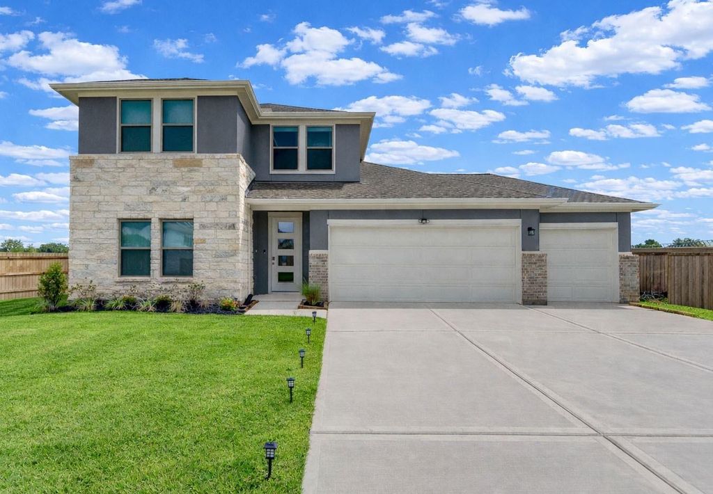 Step into this beautifully designed two-story home, where classic charm meets modern comfort. A grand foyer welcomes you inside, leading to a spacious study—perfect for a home office, library, or flex space. The heart of the home features an open-concept kitchen that flows effortlessly into the dining and family areas, creating the perfect setting for entertaining or everyday living. With 4 bedrooms, 2.5 bathrooms, and a large game room, there’s plenty of space for everyone to relax and unwind. The primary suite is a true retreat, offering a spa-inspired bathroom complete with a separate soaking tub and shower, along with an expansive walk-in closet. Step outside to your covered patio and enjoy breathtaking lake views—an ideal backdrop for morning coffee or evening gatherings. Experience the best of indoor-outdoor living in this exceptional home. Three Car Garage. Stucco and Stone Elevation. Call today to schedule a privat tour.
