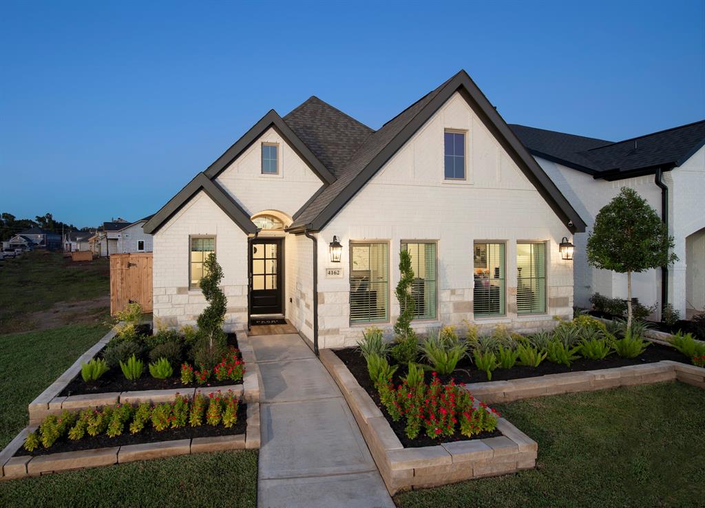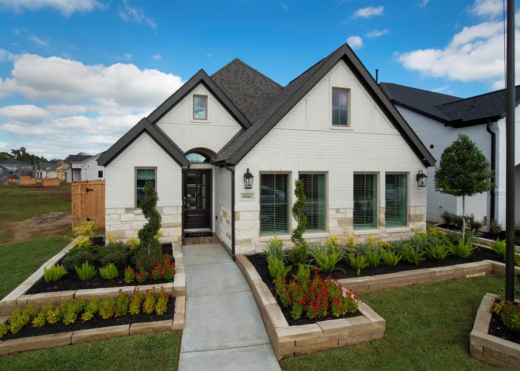 Front porch with two-story entry. Large family room with wall of windows. Home office with French door entry just off the family room. Island kitchen with built-in seating space and a corner walk-in pantry opens to the dining area. Secluded primary suite. Primary bath offers dual vanities, walk-in closet and a large glass enclosed shower. Second level offers a large game room with a wall of windows, secondary bedrooms with walk-in closets, two full bathrooms and a linen closet. Covered backyard patio. Utility room just off two-car garage.