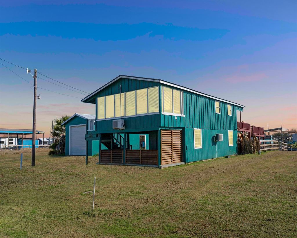 Waterfront home on TWO LOTS!! Enjoy private access to the water with your own boat ramp and drive-through boat storage! This beautiful property offers a spacious expansive deck perfect for relaxing while overlooking water views. Quick access to the Intracoastal Waterway (ICW), Matagorda Bay, and the Gulf of Mexico make it an ideal location for fishing enthusiasts. The home is being sold furnished and features a one-bedroom, one-bathroom setup upstairs, with a second bedroom and half bath downstairs. The lower level also includes an outdoor shower and a convenient laundry room! Lets go take a look!