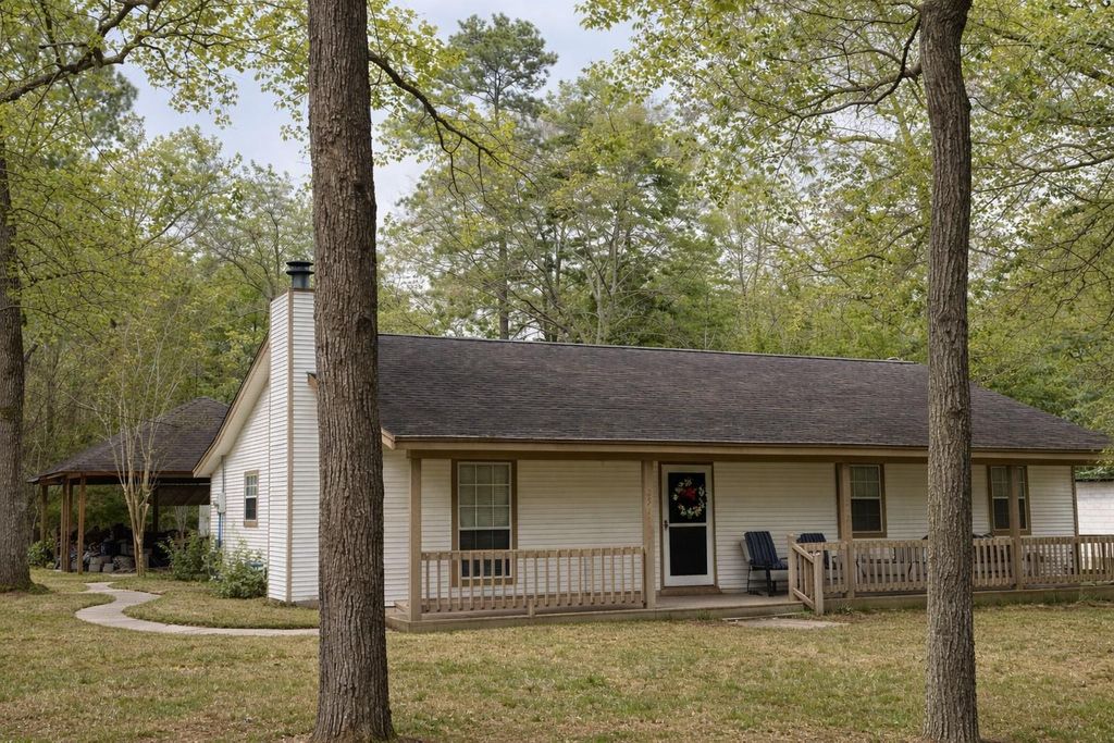 Charming 3-bedroom, 2-bath home on a quiet cul-de-sac in Clear Creek Forest, situated on nearly ¾ acre with beautiful mature trees that provide shade and a peaceful setting. This inviting home features an open-concept layout with a spacious living room centered around a cozy fireplace that flows seamlessly into the dining area perfect for everyday living and entertaining. The kitchen offers granite countertops, stainless steel appliances, and generous cabinet space. Relax on the welcoming front porch or unwind on the back porch overlooking the large, shady backyard. The property also includes an oversized carport and a 24x30 workshop ideal for hobbies, storage, or projects. Enjoy peaceful country living with convenient access to Magnolia, Tomball, and nearby shopping and dining.