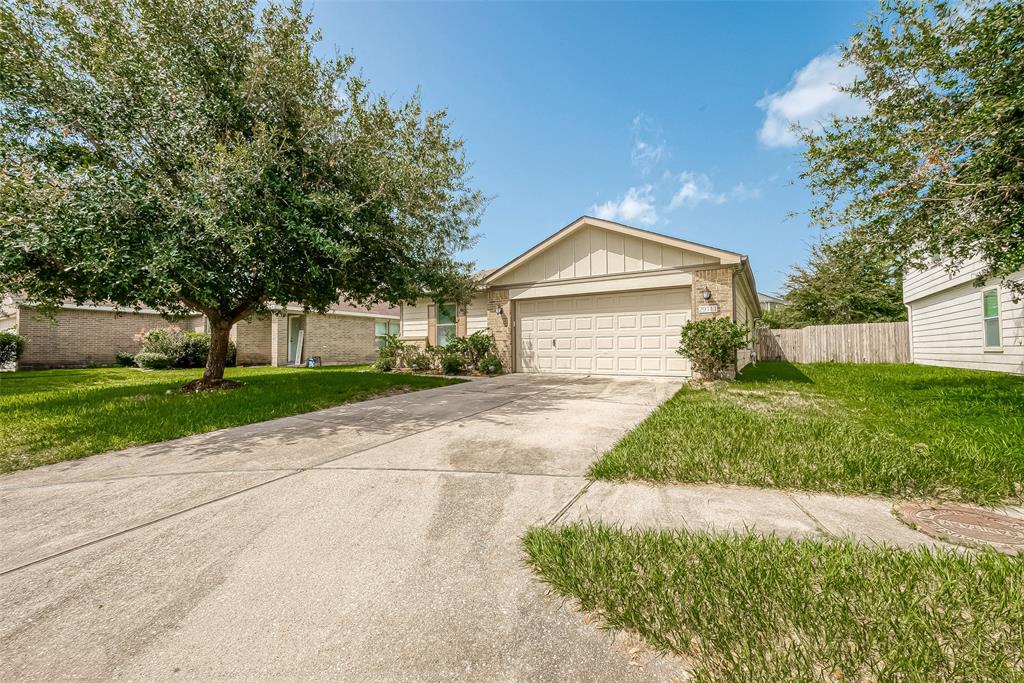 Stunning 3 bdrm 2 BA 1 story home w/flex RM as study/office ft. spacious open floor plan, neutral colors through-out, & cul-de-sac location. Kitchen complete w/ tile floors, laminate counters, tile backsplash, double basin SS sink, & opens to den. Breakfast area w/access to backyard. Spacious den w/wood look tile floors & ceiling fan. Carpeted primary bdrm w/large closet& ceiling fan. Primary BA showcases double sinks, plus bath/shower combo. 2 secondary bdrms will fit queen size furniture & share bathroom. Home has plenty of potential w/2 secondary bedrooms +extra RM allowing for flexibility to use these spaces as study/library, hobby RM, home gym, music RM, playRM, or whatever fits your lifestyle best. 2 car attached grg, double wide driveway, utility RM & large backyard. Located in sought-out Conroe ISD! refrigerator included.Main living areas/hallways/ rooms now ft. wood-look tile instead of carpet. NO CARPET. Home recently painted through out.
