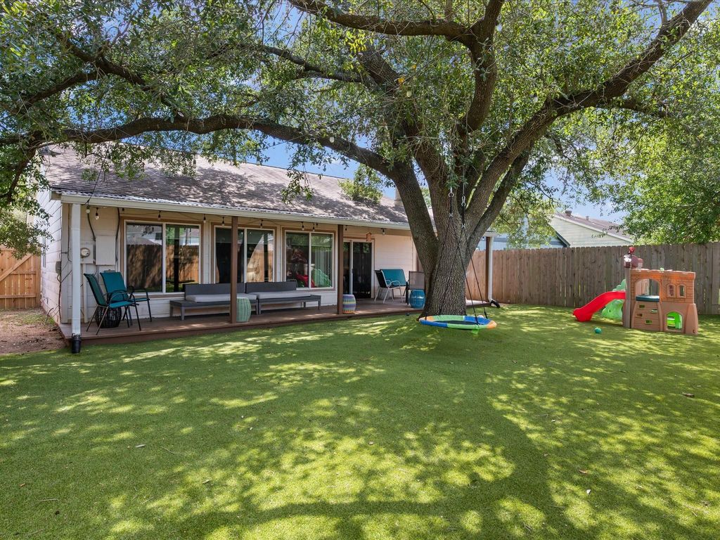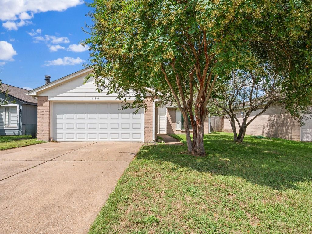 Tastefully updated, single story, 3 bed/2 bath home located in Cypress Meadows, Katy, TX! Updated fixtures and vinyl plank flooring throughout, no carpet! The living room features high, vaulted ceiling, fireplace and sliding glass door entry to the back porch. The remodeled kitchen has beautiful black quartz counters/backsplash, stainless appliances and updated cabinetry. Spacious primary suite and fully updated ensuite has seamless shower door and elegant vanity sink. Secondary bedrooms located on the other side of the home allowing privacy also with updated bath. Soak in sunrises and sunsets on the covered back porch over looking the turfed backyard with storage shed. The epoxied garage is equipped with a mini split, perfect for exercising or workshop related activities. Approx. age of major mechanicals include: 2018/2021 windows, 2023 water heater, 2020 AC compressor & 2016 roof. Located within minutes of Hwy 99 and dining/shopping, this adorable home is ready for it's new owner!