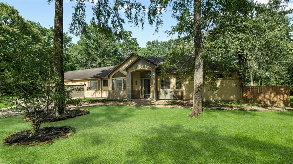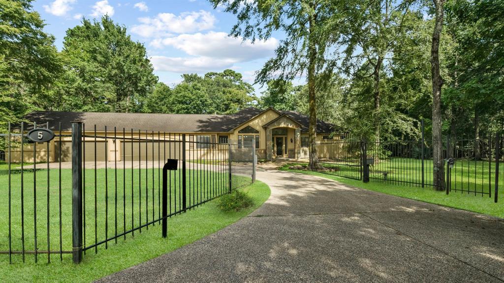 Available for 6 to 12 month lease! Custom 1.5 story with a 4 car garage on 2.8 wooded acres in gated Oak Crest Estates. Circular drive w/ iron fencing & driveway gate, secluded & tranquil setting. Beautiful pool/spa with natural landscaping. Flowing floor plan with slate flooring, granite countertops, high ceilings, spacious bedrooms & 4.5 baths. Fantastic kitchen! Guest quarters w/loft, kitchenette and full bath not included in listed square footage. Large dog run. Screened porch to enjoy views of the pool and grounds. Zoned to Magnolia ISD!