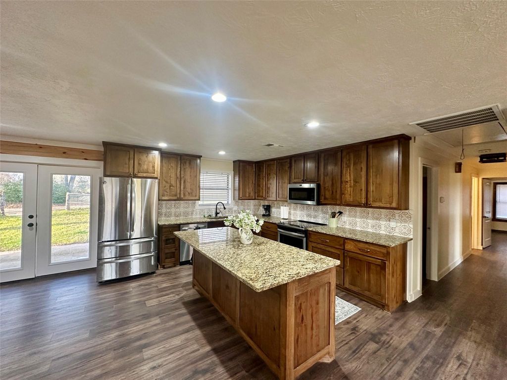 Escape to the peace and beauty of country living! This beautifully renovated 5 Bdr/3 full bath brick home sits on 4.33 acres in Limestone county and offers the perfect blend of comfort, space, and rustic charm. Ideally located halfway between Dallas and Houston and just minutes to Lake Limestone Marina on the east side! Step inside to an inviting open-concept living area featuring pine wood walls and a large fireplace, creating a warm and welcoming atmosphere. The spacious kitchen is a showstopper with a beautiful granit island, custom cabinetry and stainless steel appliances, perfect fo entertaining family and friends. The property also features a very large barn with a concrete slab and partial fencing, offering excellent potential for equipment, workshop, hobbies, or animals! Whether you're looking for a country homestead, weekend retreat near the lake, investment property, or room to grow, this property offers space, character, and a fantastic location!
