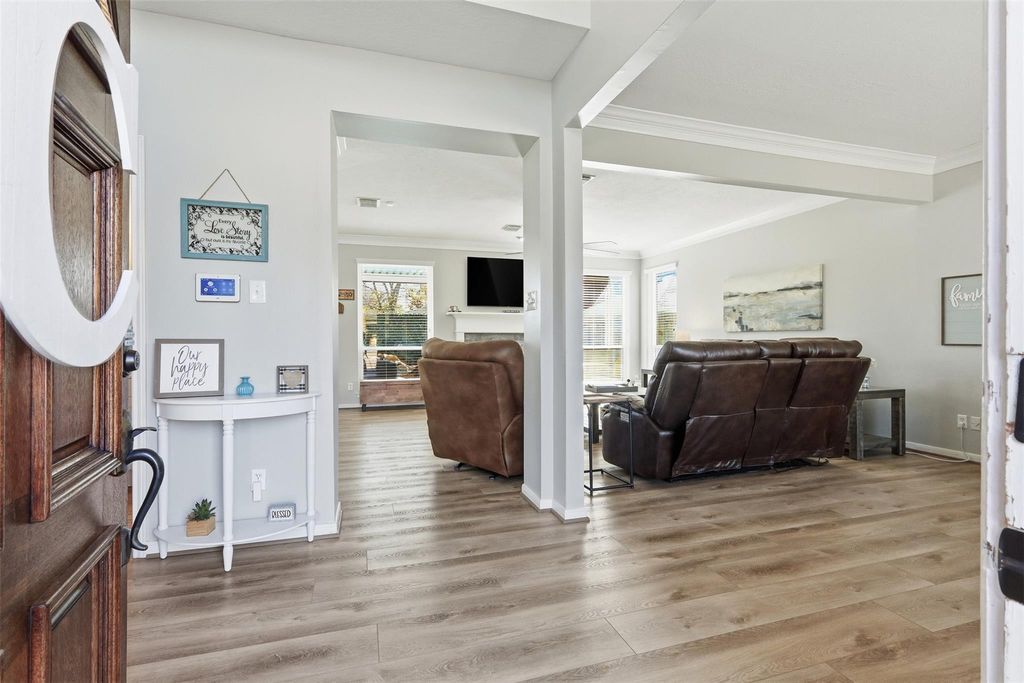 Ready for buyers seeking an updated, move-in-ready home with lasting value! This 4-bedroom, 3.5-bath home features new double-pane windows and luxury vinyl plank flooring throughout the downstairs. The kitchen offers granite countertops and a large island that's open to the breakfast area and den with views that overlook the pool/spa. Step outside to the newly updated pool and spa (2024) which includes a Polaris WiFi pool cleaner for easy maintenance. A windstorm-rated back patio cover (2023), wired Bose outdoor speakers, soffit lighting, and professional landscaping enhance the outdoor living experience. Major system upgrades include a full-house Generac generator with its own meter, a new electrical breaker box, 5–6-year HVAC and roof, stainless steel appliances, current ductwork, tankless water heater, a Trane thermostat, and much more! Walking distance to the neighborhood park! This home in DPISD offers style, comfort, and peace of mind—inside and out!