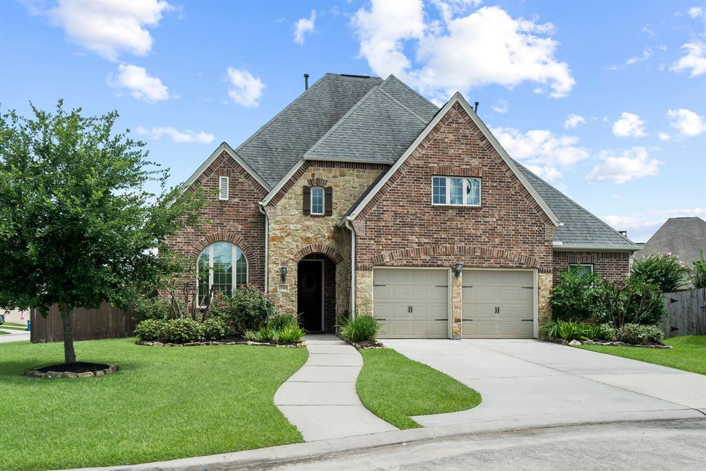 This stunning home shows like a model with amazing curb appeal, high ceilings, and stunning finishes throughout. Located on the corner of a cul da sac in Hawthorn Trails. Beautiful island kitchen with, walk in pantry, granite counters, under and over cabinet lighting and gas cooktop that overlooks the breakfast room and family room with a wall of windows and gas log fireplace. It also boosts a second living area, media room, formal dining and a study! Owner's retreat has an extra large closet. The laundry room is conveniently attached to the main closet, and the washer and dryer are included! All secondary bedrooms are upstairs. The media room comes with a 106 size screen and projector. The garage has an abundant storage space and comes with a refrigerator. Enjoy the covered patio with room to add your own private pool. Spring Trails features close proximity to Grand Pkwy for an easy commute to the The Woodlands, downtown and George Bush airport, as well as parks, area pool.