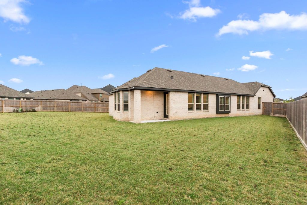 Exceptional value in Harvest Green priced below market! Barely lived in this immaculate one-story Highland home is nestled on one of the largest lots available. Featuring 4 bedrooms and 2.5 bathrooms, it offers a welcoming layout. The entryway includes a convenient office nook, leading to a cozy living room. The dining area is perfectly positioned across from the open kitchen, which boasts plenty of cabinet space. Elegant shutters adorn multiple windows throughout, enhancing the home's charm. The backyard features a covered patio and an impressively large outdoor space a rare find for 40' homes!