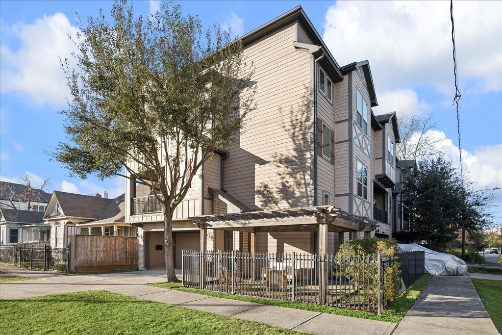 Located in the heart of the Arts District. Just steps from the hike/bike trail w/ direct access to Downtown, the Heights & beyond! This 3 bed, 3.5 bath home features tall ceilings, hardwood floors & generously sized rooms throughout. The kitchen boasts a large island w/ breakfast bar, wine fridge & walk-in pantry. The dining area drenched in natural light, while the adjoining living room opens directly to a balcony for seamless indoor–outdoor living. The spacious primary suite offers room for a king bed & sitting area. The ensuite bath is a true retreat w/ a soaking tub, glass enclosed shower, dual vanities, & walk-in closet. A secondary bedroom w/ ensuite bath & laundry complete the 3rd floor. The 1st floor includes a versatile room w/ full bath, perfect for a home office or 3rd bedroom. Enjoy a gated front courtyard, 2-car garage & extra driveway parking. Located just minutes from Downtown and Eleanor Tinsley Park, this location puts the very best of Houston right at your doorstep.