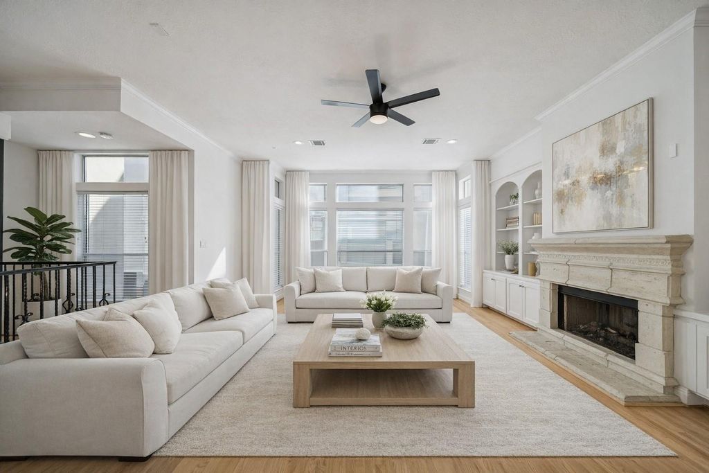Framed by downtown vistas and surrounded by artist studios and bayou trails, this residence offers a truly connected lifestyle. Enjoy new hardwoods throughout the main living area; balconies with Houston skyline views on the 2nd and 3rd level; plus a private side patio. A light-filled open floor plan features a coffered-ceiling kitchen with a counter-height breakfast bar, complemented by a dining room thoughtfully set apart from the main living area. Each bedroom offers the comfort of an ensuite bathroom and a spacious walk-in closet. A dedicated laundry room offers a true, enclosed space distinct from a hallway or closet-style setup. The home features tasteful and timeless finishes throughout. Situated under 10 minutes from downtown, the home offers walkable access to dining and nightlife, with effortless connectivity to The Heights, hike-and-bike trails, and I-10 and I-45. Come see this inviting home that balances city access with a sense of retreat.