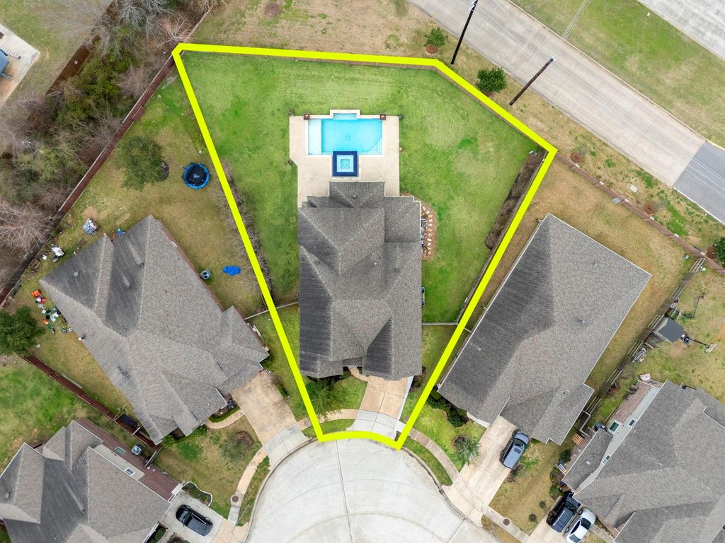 Welcome to this stunning 2-story pool home in the sought-after Treeline North community, offering 5 bedrooms, 3.5 baths, and a 3-car tandem garage. Designed with entertaining in mind, the open family room has high ceilings and expansive windows that fill the home with natural light. The large kitchen is the heart of the home, featuring beautiful granite countertops, tall cabinetry, and an oversized pantry that any home chef will appreciate. Upstairs, spacious game and media rooms provide the flexibility to create the ultimate hangout theater. The primary suite offers a private retreat with a luxurious en suite bath that truly stands out. Step outside to a large fenced backyard complete with a covered patio, sparkling pool, waterfall feature, and hot tub, perfect for relaxing or hosting year-round. Located near highly rated schools, dining, shopping, parks, and walking trails.