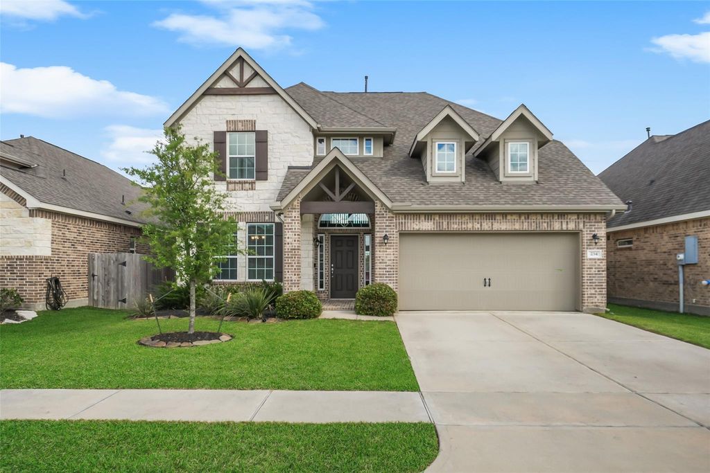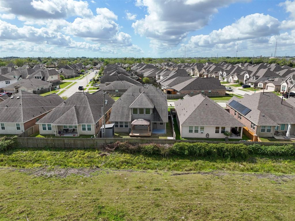 Priced to sell. This beautiful home has lots of windows, natural light and no back neighbors! The kitchen has a walk-in pantry, under-stairs storage closet and a farmhouse sink in a large island that is open to the family room with a soaring ceiling. There is also a formal dining room and office on the first floor. Upstairs is a split plan with a game room and a bedroom with it's own bathroom on one side (great for guests or college kids) and two more bedrooms and a bath on the other side. From the catwalk you can see cattle and the Alvin water tower at a distance. The back yard has a patio and a wood deck covered by a gazebo that is great for entertaining. Carpet in Primary bedroom to be replaced soon. Located in a small neighborhood close to Friendswood and Pearland and minutes from Clear Lake, the Houston Medical Center and Downtown. It's a great location.