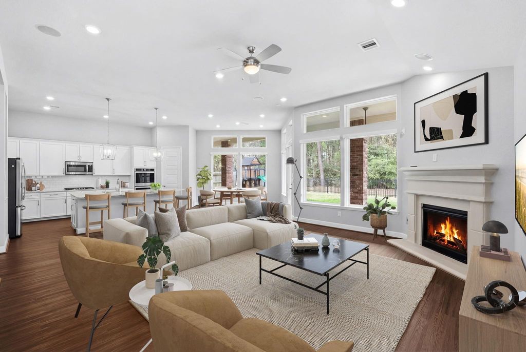 Welcome to this beautifully maintained one-story home tucked away in the desirable Lakewood Pines community. Ideally situated near the end of a quiet cul-de-sac, this property offers a peaceful setting with minimal traffic and the added privacy of a wooded reserve behind the home. Inside, the thoughtfully designed floor plan features spacious, oversized rooms and elegant luxury vinyl plank. The bright white kitchen serves as the heart of the home, offering a clean, timeless aesthetic. A dedicated study provides additional versatility and can easily function as a home office, media room, playroom, or flexible living space. Large windows throughout the home invite in natural light while showcasing the peaceful wooded backdrop. The backyard setting provides a sense of privacy and connection to nature that’s hard to find. With its spacious layout, refined finishes, and prime location within the neighborhood, this home offers both comfort and tranquility!