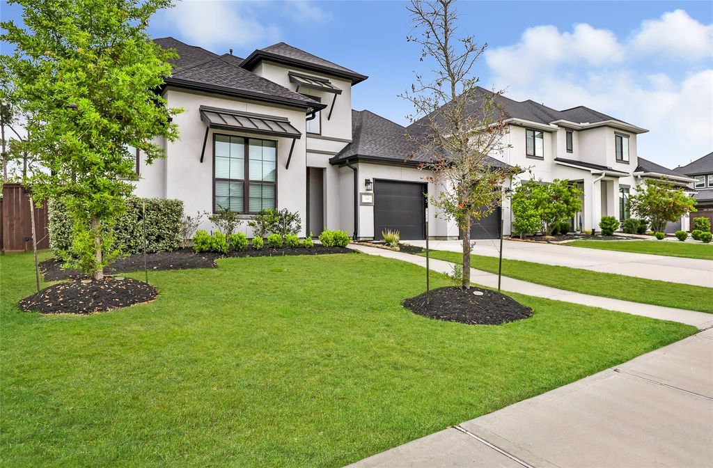 Ideally located in the exclusive gated section of The Groves, this luxury Toll Brothers Warner floor plan is surrounded by nature. A dramatic two-story foyer sets the tone, leading to a private study and an open-concept great room with a striking floor-to-ceiling Roman clay 60" linear fireplace. The chef-inspired kitchen boasts an oversized island, casual dining area, and walk-in pantry. Expansive multi-slide glass doors open to an extended covered patio for seamless indoor-outdoor living. The luxurious primary suite features a tray ceiling, walk-in closet, and spa-like bath with dual vanities and a luxe glass-enclosed super shower. Thoughtfully designed with three bedrooms on the main level and two upstairs, plus a generous game room perfect for entertaining. Upgraded light fixtures and upgraded finishes throughout. Situated on an 11,000 sq ft lot backing to green space—ideal for your dream pool! Served by Humble ISD with easy access to Beltway 8, Highway 59, and IAH Airport.