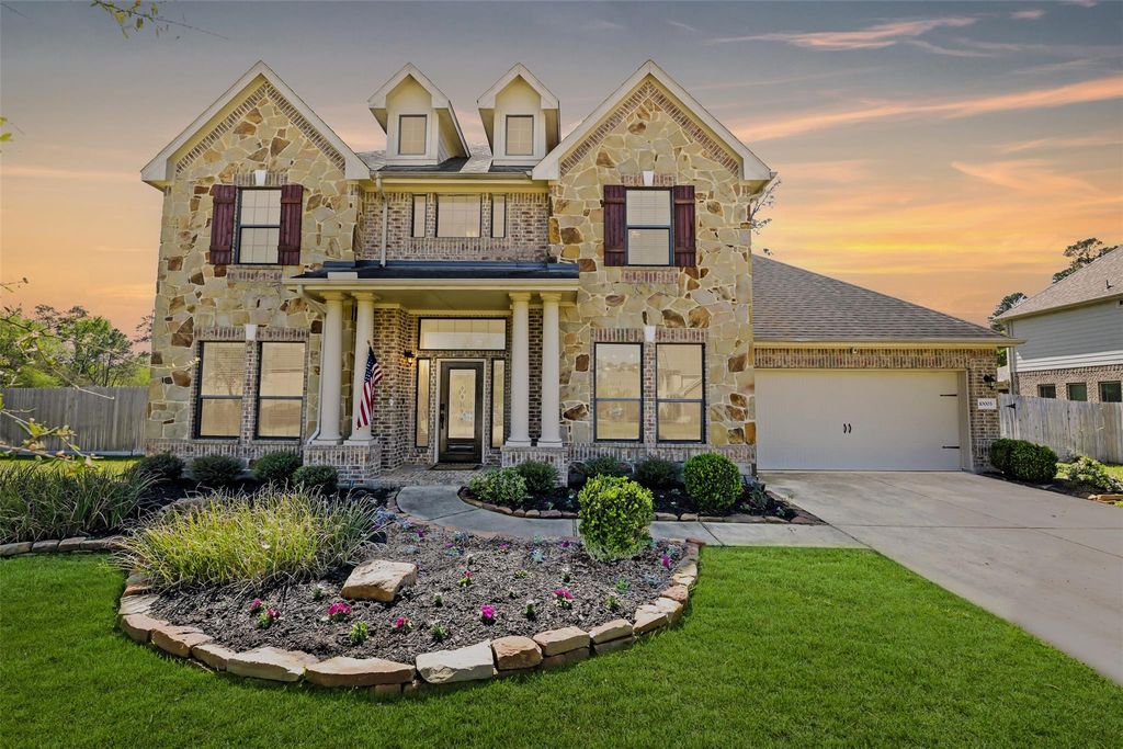 10003 Banestone Blvd is listed for sale at $ 639,000. The Single-Family property has 5 bedrooms, 4 Full Bathrooms, 3097 square feet and was built in 2014. The lot size is 30380 Square feet. ##BR##Set on a sprawling 0.69-acre corner lot in Tomball’s Reserve at Inverness community, this gorgeous 5-bedroom, 4-bath with a striking stone elevation is a true stunner. A sunlit foyer spills into a grand family room with soaring ceilings and wood beam accents, a floor-to-ceiling stone fireplace, a wall of windows, and a seamless transition to the island kitchen with quartz countertops, ebony cabinetry, and a full suite of stainless appliances including a built-in beverage fridge. The first floor also hosts an impressive utility room with sink, a sophisticated study with modern glass doors and built-ins, a guest suite with a full bath, and a tranquil owners retreat with trayed ceilings, a spa-worthy bath, and custom closet organization. Upstairs find a gameroom and 3 bedrooms, with one bedroom currently configured as a media room complete with surround sound and blackout curtains. Outdoors, a covered patio overlooks a pool-sized yard with a playground and fire pit area included.