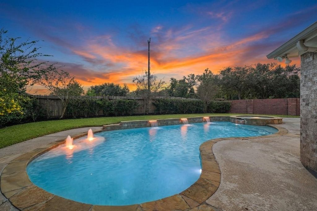 Stunning 1.5 story cul-de-sac home with pool, spa, and no rear neighbors — the private retreat you’ve been waiting for. Fresh interior paint, recent carpet, new HVAC in 24' and a new roof in 25' make this home move-in ready. The bright, open layout features a spacious kitchen flowing into the family room with views of the backyard oasis. Inside are generously sized bedrooms, flexible spaces for work or play and excellent storage. Outside, enjoy a sparkling pool & spa, large yard, and total privacy. Conveniently located minutes from HEB, parks and major routes such as the Ft. Bend Toll Rd. & HWY 6. This home delivers comfort, convenience & resort-style living. Key Features: Oversized cul-de-sac lot • Pool & spa • No rear neighbors • New roof in 2025 • New HVAC in 2024 • Fresh paint & carpet • Open floor plan • Move-in ready • Close to schools, parks & amenities. This combination of features rarely come available - schedule your showing and experience it for yourself before it’s gone!