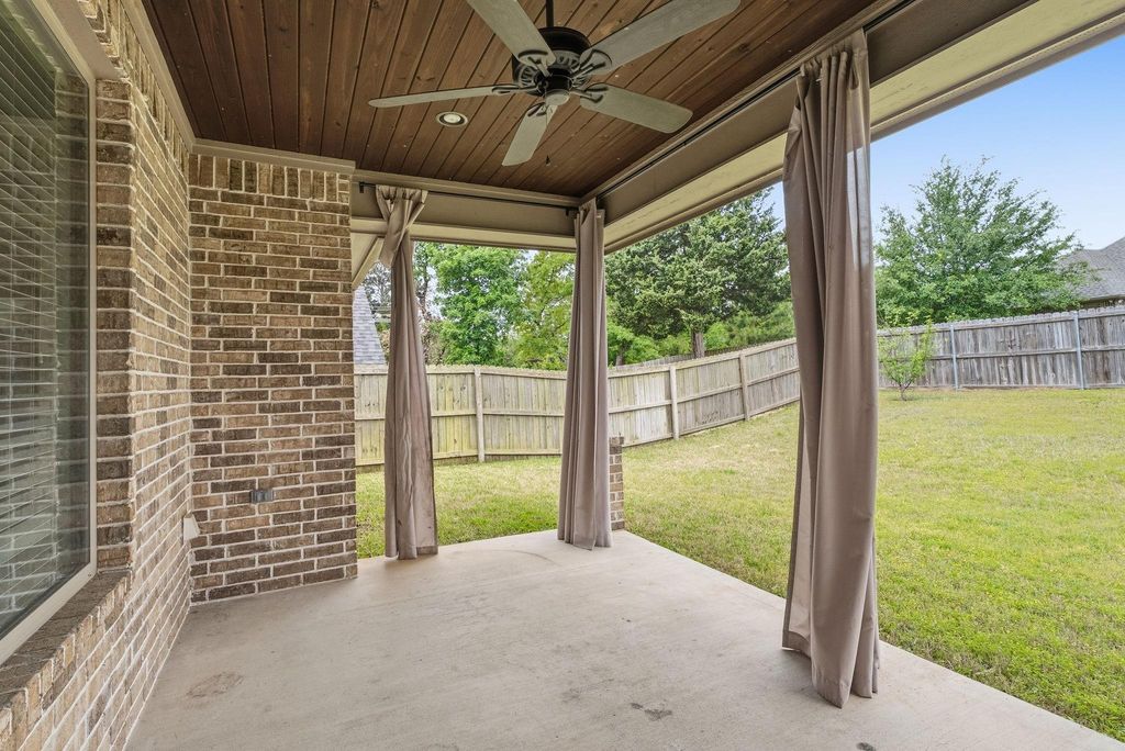 Spacious and thoughtfully designed, this 4-bedroom, 2-bath home offers comfort and functionality for everyday living. Built in 2017 and tucked away on a peaceful cul-de-sac, it combines modern living with a prime, convenient location—just a short walk to FRESH, restaurants, walking trails, and more. The open-concept layout features a cozy fireplace, welcoming dining area, and a well-appointed kitchen complete with large island with additional seating—perfect for entertaining or casual meals—plus an oversized walk-in pantry for ample storage. The split primary suite provides privacy and relaxation, featuring a luxurious en-suite bath with separate vanities, a soaking tub, and an oversized walk-in shower. A generously sized utility room, conveniently accessible from the primary closet, adds everyday ease. Step outside to enjoy the covered back porch, ideal for relaxing or hosting gatherings year-round. Blending practical features with inviting spaces, this home is ready to suit a variety of lifestyles.