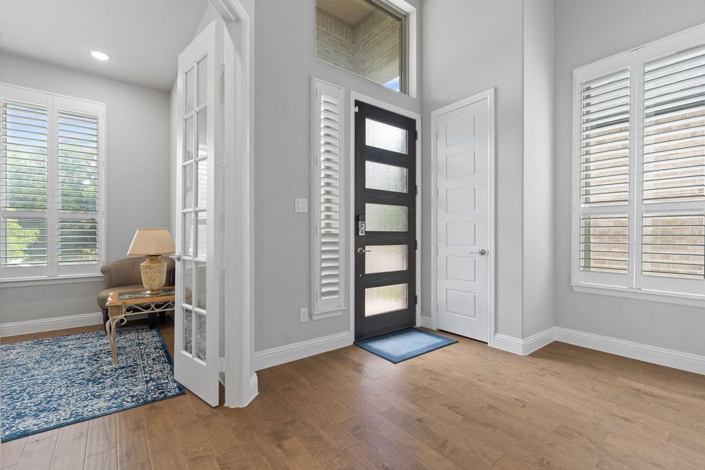 Don’t miss this barely lived in home located on a greenbelt in sought after Fairview TX! With its low maintenance exterior and thoughtfully planned interior, this home will satisfy the most discriminating buyer. Easy care wood flooring flows through much of the first floor including the office, family room, dining area and kitchen. With French doors and views of the greenbelt, the large office sits right off the entry way. The open concept kitchen, living and dining space defines an entertainers dream with the kitchen offering bar seating, quartz style counters, gas cook top and abundant storage. A covered patio is a must in Texas and this space will not disappoint in being the perfect place to unwind and relax. The private master suite has a large walk in closet, an en suite bath with dual vanities oversized shower and linen storage. Upstairs you will find two large secondary bedrooms with walk in closets and two baths, each with storage. The media room is wired for projection, has an impressive storage closet and attic access. A nice feature in the garage is an additional space to use as storage or a workshop area. Plantation shutters and blinds cover the windows, with electric shades covering the upper windows in the family room. This home is close to shopping, dining, hospital and minutes to historic downtown McKinney Square!