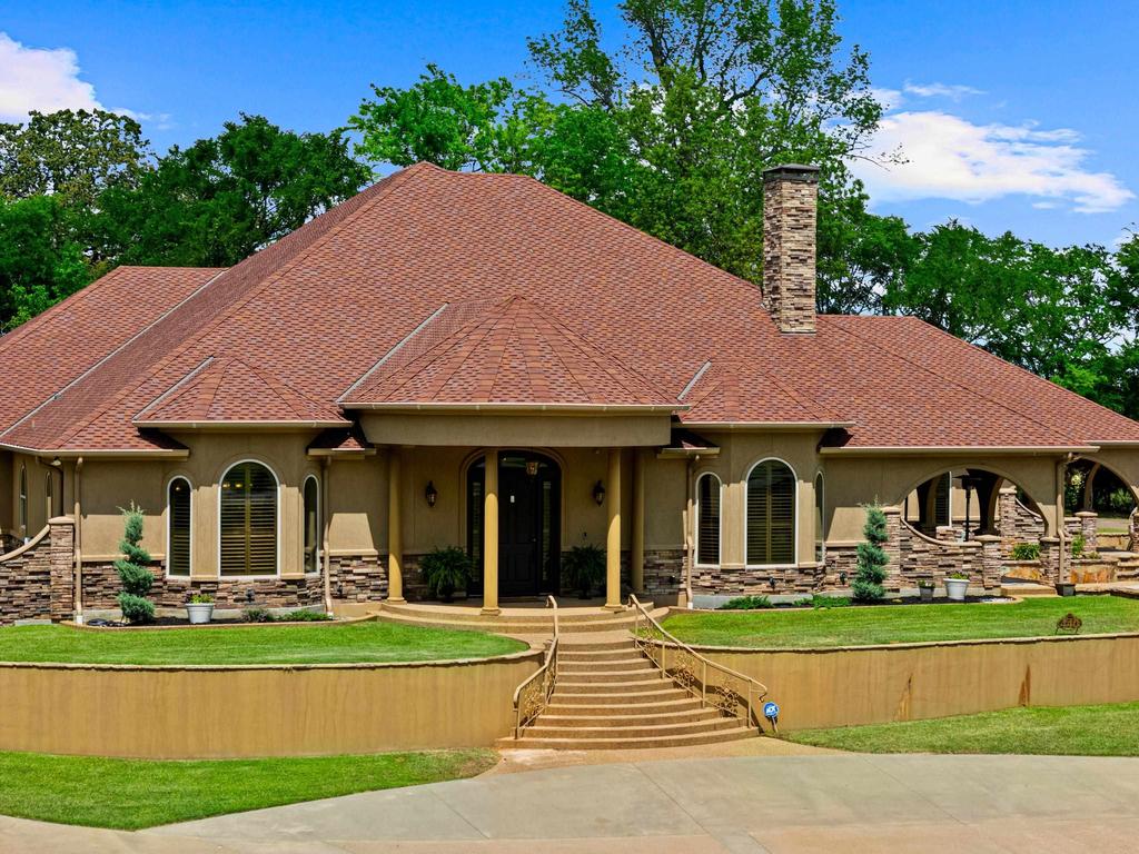 This one is the total package. From the moment you pull in, you will feel like you hit the jackpot. Situated on 11.5 acres, this immaculate custom home offers over 5,000 square feet of thoughtfully designed living space with resort-style outdoor living and unmatched functionality. Built in 2014, the home blends timeless design with quality craftsmanship throughout. As you enter through the grand entrance, you will immediately notice the attention to detail. Wood look tile flooring, granite countertops, custom oak cabinetry, shutters, and extensive trim work and crown molding carry throughout the home. The primary suite is truly a retreat of its own. With an impressive 30x40 layout, it offers the space and privacy of its own wing, perfect for relaxing, working, or creating your own personal escape. Each bedroom has its own private bathroom, along with an additional half bath for guests. While currently a 3 bedroom home, there are multiple flex spaces that can easily be used as additional bedrooms, offices, or a game room. Step outside and you will understand what makes this property so special. A heated gunite pool overlooks the property and is enhanced with Jellyfish lighting, creating a true resort-style setting. The private stocked pond, supported by a water well, adds both beauty and function while also assisting with irrigation. The property is built for both everyday living and entertaining with a 45x30 drive through garage, a 42x38 carport, and a multi dog run already in place. Conveniently located between Tyler and Longview and within reach of Shreveport and Dallas, you get privacy without sacrificing accessibility. Tempest Golf Course is just about a mile away. Luxury, space, and functionality all come together here. Homes like this do not come around often.