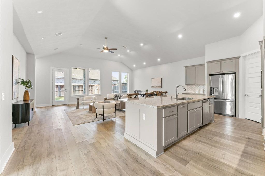 16631 Polletts Cove Ct is listed for sale at $ 372,500. The Single-Family property has 3 bedrooms, 2 Full Bathrooms, 1 Half Bathroom, 2396 square feet and was built in 2020. The lot size is 8217 Square feet. ##BR##Welcome to this stylish single-story home on a spacious corner lot in The Groves. Beautiful landscaping marks the entry to comfortable living as it offers plenty of space while still giving warm and welcoming vibes. Under a vaulted ceiling, an open family room flows right into the kitchen, making it ideal for entertaining or everyday living. The kitchen really shines with a large island, herringbone tile backsplash, 5-burner gas cooktop, under-mount sink, stainless steel appliances, and a walk-in pantry. Whether you love to cook or just gather around the island, this space delivers! Wood-look laminate flooring runs throughout the main living areas, adding both style and durability. The primary suite is a true escape with dual sinks, a walk-in shower, and a spacious walk-in closet. Step outside to the covered back patio for morning coffee and relaxing evenings while you gaze upon a huge backyard. Neighborhood amenities include an area pool, a lake, and walking paths.