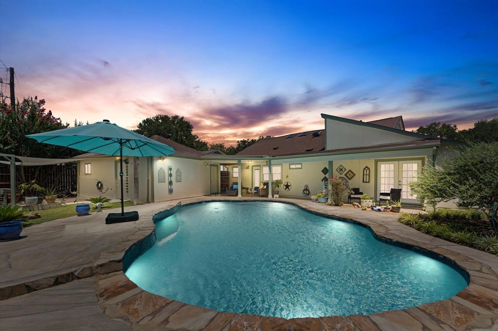 Discover this beautifully remodeled gem nestled on a quiet cul-de-sac in Bear Creek Village. Thoughtfully updated including fresh exterior paint, this light-filled home offers a unique layout with a split floor plan. High ceilings and natural light fill the family room. The chef-inspired kitchen boasts a center island, quartz countertops, sleek soft-close cabinetry, and stainless steel appliances. A farmhouse sink sits beneath a window with a view of the newly re-finished pool. A spacious primary suite features a walk-in closet and an ensuite bath with a gorgeous walk-in shower. From your suite, open the French doors to a covered patio for morning coffee or a quiet evening outdoors. Enjoy a versatile loft area in your home, ideal for work or play. Fall in love with your backyard oasis featuring a sparkling pool and no back neighbors. A half bath is located in the garage for added convenience. And speaking of convenience, the home has a whole house generator!