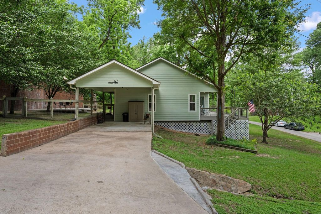 Witness stunning sunset views at Pinwah Pines Subdivision. This 3/2 home features an open kitchen/dining area, a cozy living room with a wood burning fireplace, tiled floors, tiled showers, and vaulted ceilings. Enjoy a spacious wrap-around front porch with a view of the lake. Perfect for birdwatching with an abundance of species and frequent deer sightings. Ample storage for weekend getaways or full-time living, plus all appliances included. Don't miss out on this waterview gem. Schedule your showing today to experience nature's beauty firsthand.