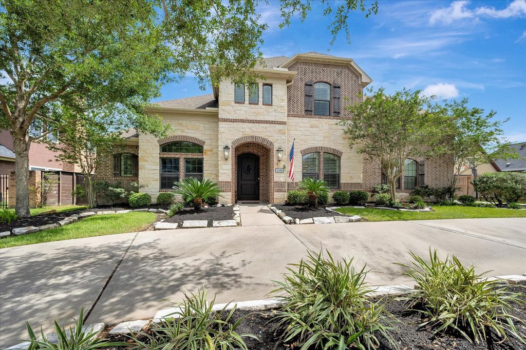 Stunning luxury home with resort-style pool, outdoor kitchen, and a highly desirable floor plan featuring a primary suite and secondary bedroom with its own full bath on the main floor. The open-concept kitchen features an oversized granite island, abundant cabinetry, and a spacious breakfast area, plus two dining areas for both formal and casual gatherings. The serene primary suite offers peaceful backyard views, a luxurious ensuite bath, and a large walk-in closet. Upstairs, you’ll find three king-sized bedrooms, each with its own bathroom, along with a media room and game room—perfect for entertaining. Step outside to a resort-style backyard with a heated pool and spa, fire pit, and expansive covered cabana with a full outdoor kitchen, TV, and half bath. Additional highlights include dual staircases, plantation shutters, remote blinds, fresh paint and carpet (2023), walk-in attic, circular driveway, three-car garage, oversized professionally landscaped lot, and no MUD or PID taxes.