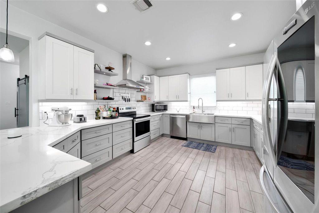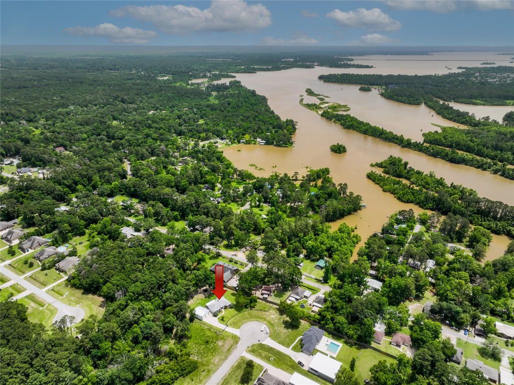 Welcome to this stunning property in The Commons on Lake Houston! Enjoy the canal front location in a quiet cul-de-sac. The fully fenced lot includes an automatic driveway gate and a spacious 35X30 shop perfect for your vehicles and toys. Modern exterior with custom finishes throughout - no attention to detail was missed! Three Bedrooms + an Office, Quartz Countertops, Soft Closing Cabinets & Drawers, Under Cabinet Lighting, Tile flooring throughout, Open Concept Main Living Spaces, ALL closets have built in dressers, Wood Burning Fireplace, High Ceilings, 29X11 Covered Back Patio. Every detail is exquisite. Ready to stretch your legs? The community offers 30+ miles of trails, a pool, 2 lake accesses with boat ramps, fishing pier, and parks.