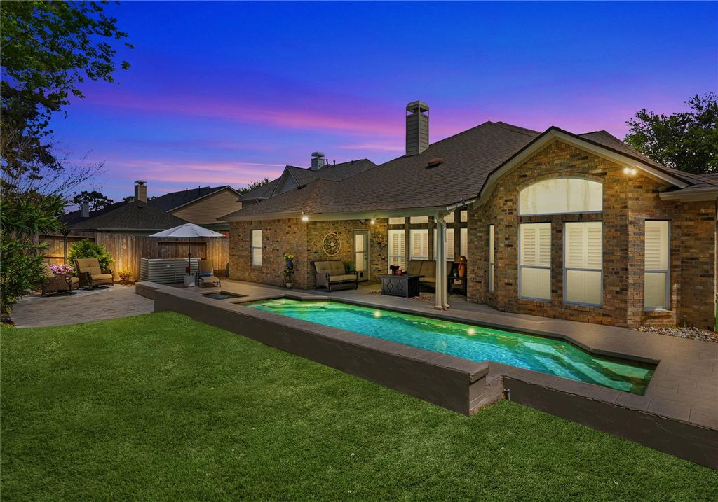 Meticulously maintained and move-in ready, this stunning one-story home in Seven Meadows is zoned to highly acclaimed Seven Lakes HS! Offering 4 bedrooms, 3 baths, private backyard oasis with heated pool, spa, waterfalls, and expansive covered patio, perfect for entertaining! Thoughtful split floor plan with a secluded primary suite featuring serene pool views, hardwood flooring, garden tub and spacious walk-in closet with built-ins. The open-concept boasts soaring ceilings, hardwood floors, plantation shutters, and a spacious living room with fireplace and a wall of windows showcasing the pool and patio while filling the space with natural light. Bright kitchen with granite counters, skylight, and all major appliances included. Walk to the elementary school, clubhouse, and playground. Major updates include roof (2024), Lennox A/C (2026), pool heater (2025), plus whole-home generator and a worry-free 1-year warranty. Prime location near 99, Westpark, shopping, and dining—don’t miss it!