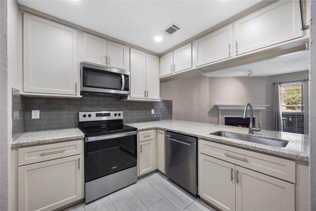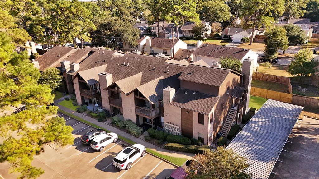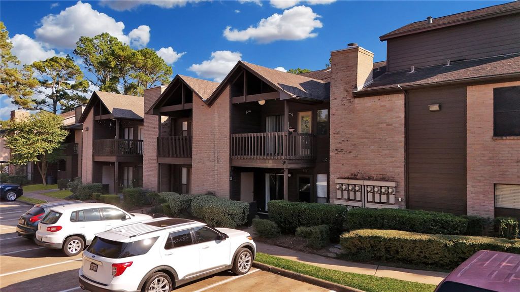 Beautifully Remodeled Condo — Move-In Ready! Fall in love with this stunning home featuring an updated kitchen with granite countertops, glass backsplash, and stainless-steel appliances. Refrigerator, washer, and dryer all included —for true turn-key living! Fresh neutral paint and carpet gives that “new home” feel throughout. Open living room with fireplace open to spacious dining area to entertain with ease. Main floor powder bath too! Enjoy parking just steps to the front door and plus community pool access for relaxing weekends. The low-maintenance lifestyle means no worries about exterior upkeep or the roof! Upstairs to two spacious bedrooms and two full baths, including a private primary suite with walk-in closet and bath. You’ll love having two outdoor spaces—a main floor patio for morning coffee and upper balcony off both bedrooms —to unwind. Perfect location with quick access to Beltway 8, 249, & 290. And best of all, the price is right! WELCOME HOME!
