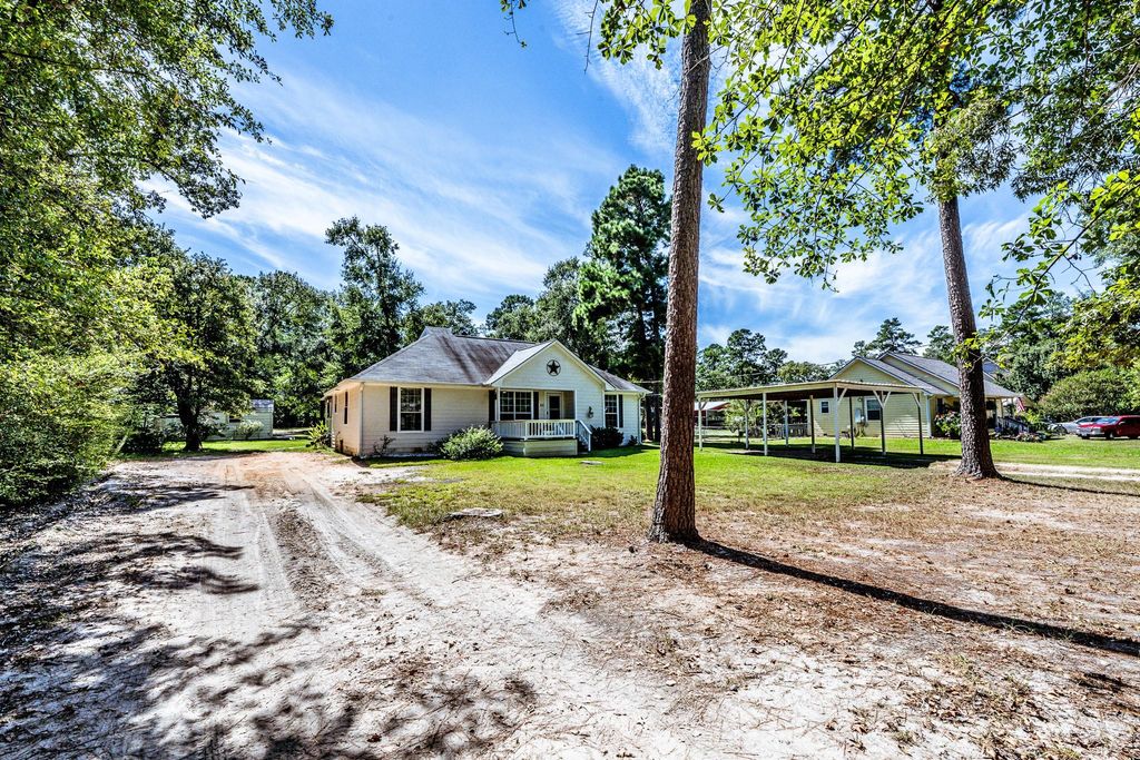 Welcome home to this charming 3-bedroom, 2-bathroom gem perfectly situated on nearly an acre of unrestricted country living—just minutes from town! Step inside to find an inviting open-concept layout with a split floor plan that offers both comfort and privacy. The spacious covered back porch is ideal for relaxing or entertaining, overlooking an above-ground pool with surrounding decking—perfect for cooling off on warm days. Outside, you’ll also find a 2-car carport, plus an additional covered carport and a storage building that’s insulated, complete with A/C and electricity. This property truly combines the best of peaceful country life with everyday convenience.