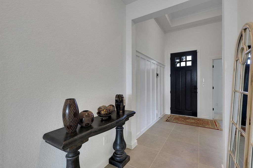 Beautiful one-story Boise plan in Cane Crossing Estates, Sealy, TX, featuring 3 bedrooms, 2 baths, and a spacious 3-car garage. A welcoming foyer with a stylish feature wall leads to a private home office with barn doors—perfect for working from home. The designer kitchen offers light-stained cabinetry, floating shelves, and quartz countertops, all open to the dining and living areas. Enjoy vaulted ceilings with wood beams and a cozy fireplace that create a warm, inviting space. The primary suite is a relaxing retreat with elegant details and a spa-like bath featuring a freestanding tub and dual sinks. Step outside to a covered patio, ideal for outdoor living. Conveniently located near I-10, TX-36, and just minutes from downtown Sealy, with community amenities including green spaces, a playground, and a scenic pond.