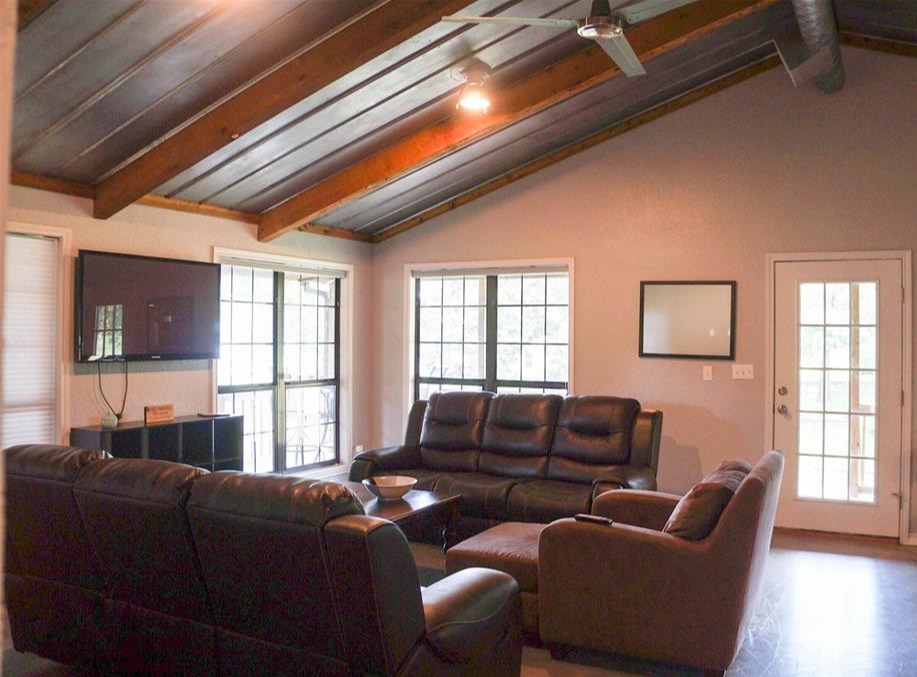Charming waterfront home with stunning metal and beam ceilings, concrete floors, and large kitchen island great for entertaining. Gorgeous kitchen with over-sized walk-in pantry. Master bedroom offers built-in cabinets in closet, large shower with bench. Inviting back porch overlooking the canal and awesome sunset views of the lake. Home is in immaculate condition. All furniture is negotiable. Subdivision offers boat ramp, pavilion and 2 fishing piers.