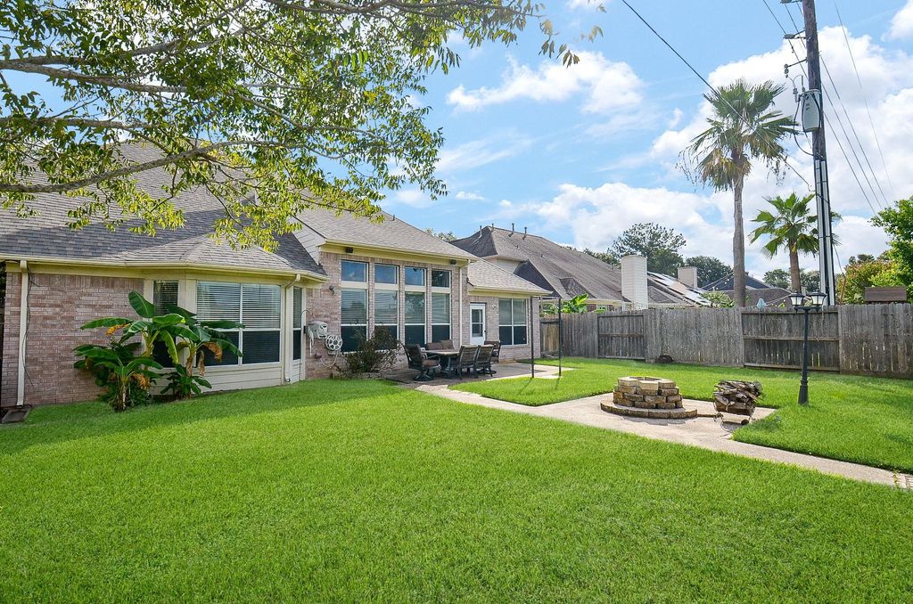 This charming home is located within the highly desired Cinco Ranch community. Easy access to churches, schools, major commuting routes and more! Open concept floor plan is inviting and family friendly. New carpeting installed 7/2025, New roof 2023, downstairs A/C 2023, Fence 2023, electric panel 2019. Two story family room allows abundant natural lighting & highlights the gaslog fireplace. Wall of windows with views to the outside. Primary bedroom is located on 1st floor. Lovely formal din/living can function as a casual flex space. Spacious island kitchen. Wood flooring in formals and family room area. Pretty Architectural features provide opportunities for art & wall decor. Bedrooms are spacious & primary suite showcases a bay window and plenty of wall space. Pocket park playground is a stones throw away. Trails, multiple pools, beach style pool are just a few of the many recreational areas in this Golf Course Community. Home is lovingly maintained and ready for quick occupancy.