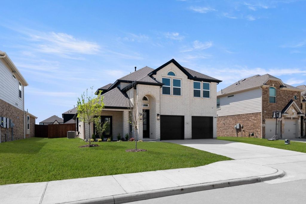 MLS# 21126680 - Built by First Texas Homes - Ready Now! ~ Discover this stunning two-story, 2,784 sq ft home featuring 5 bedrooms, 4 bathrooms, and a spacious 2-car garage. Nestled at the rear of the community, it boasts a premium white brick elevation and a large front porch with flex room access. The open-concept layout is perfect for entertaining, with a multi-slide door leading to an extended covered patio and a chef’s kitchen equipped with a 5-burner gas cooktop, double ovens, Shaker-style cabinets, butler’s pantry, and upgraded countertops. Enjoy modern upgrades throughout, including matte black fixtures, a freestanding tub in the primary bath, a 60 electric linear fireplace, and elegant wood flooring. Schedule your tour today!