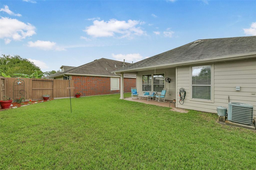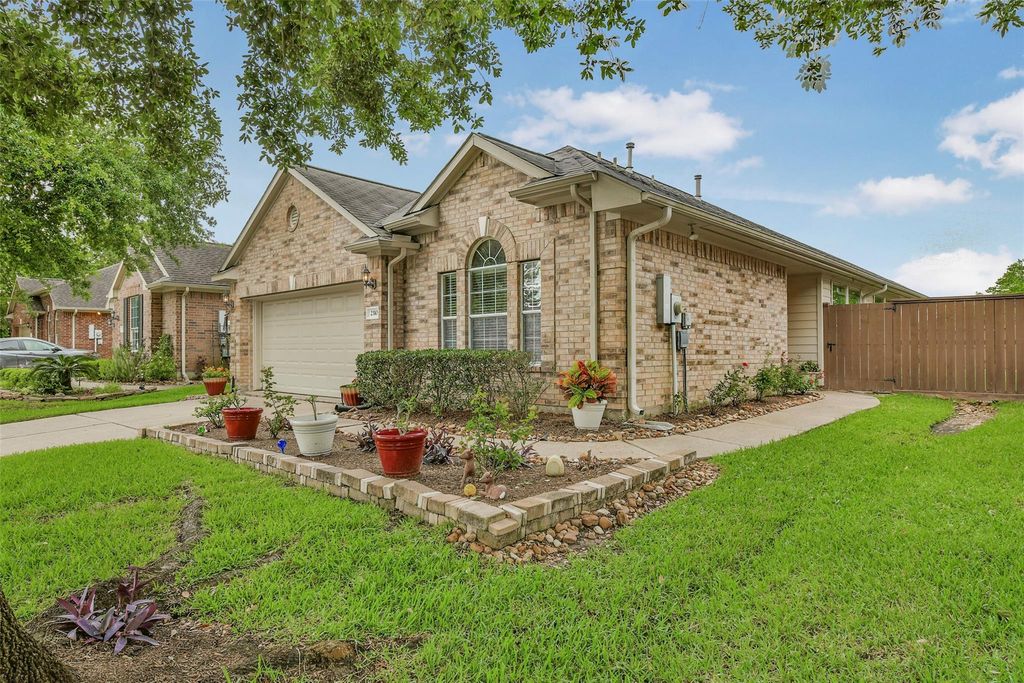 Welcome to Bellavita, a vibrant 55+ gated community offering resort-style living. This open-concept home features a spacious kitchen with granite countertops, walk-in pantry, and breakfast bar overlooking the living and dining areas—perfect for entertaining. Ceramic tile flows through the main living spaces, with warm wood flooring in the bedrooms. The primary suite includes an en-suite bath with double sinks, a jacuzzi tub, and separate shower. Enjoy a nicely landscaped backyard with a covered patio for relaxing outdoors. HOA covers basic cable, high-speed internet, front yard maintenance, and sprinklers. Residents also enjoy access to exceptional clubhouse amenities.