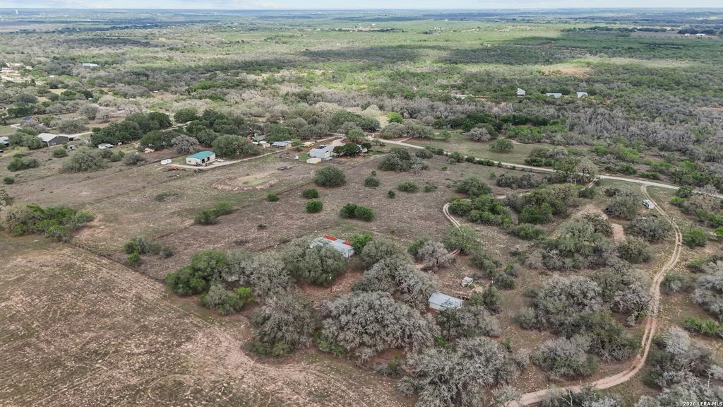 Enjoy country living on approximately 9.94 acres in Floresville ISD. This property features a well-maintained double wide mobile home with recently updated flooring and interior paint, along with multiple outbuildings that provide excellent space for storage, workshop use, or hobbies. The property is fully fenced and includes a 3 car carport and three storage buildings. An additional structure is present and currently utilized as a workshop or storage space. Utilities are a standout feature with a private well, 3 septic systems, and 2 electrical poles already in place. The well services the property and is approximately 240 feet deep, featuring a recently installed submersible pump and pressure tank. City water is available at the street as an alternative option. The acreage, existing improvements, and utility setup offer flexibility for a variety of uses while maintaining a quiet country setting with convenient access to nearby areas. Buyer to verify all property details, utilitie