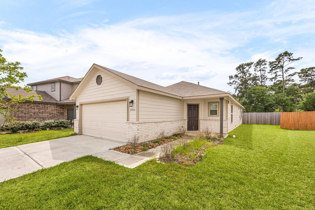 2006 Brixham Bluff Ln is listed for sale at $ 230,000. The Single-Family property has 4 bedrooms, 2 Full Bathrooms, 1500 square feet and was built in 2023. The lot size is 7308 Square feet. ##BR##Beautiful like-new 2023 build single-story home on a large cul-de-sac lot! This well-maintained home features 4 spacious bedrooms, 2 full bathrooms, and a inviting family room that flows seamlessly into a well-appointed kitchen, complete with a center island, abundant cabinetry, and generous counter space, perfect for everyday living and entertaining. The oversized primary suite offers a private retreat with an ensuite bath and a walk-in closet. Three additional bedrooms are generously sized, providing flexibility for guests, or a home office. Step outside to enjoy a large, private, fully fenced backyard with no rear neighbors, ideal for relaxing or hosting gatherings. Additional highlights include a gas connection in the backyard, EV charger in the 2 car attached garage, and a built-in pest control system for added convenience. Close to major highways, shopping and dining. Don’t miss the opportunity to make this well-maintained house your home!