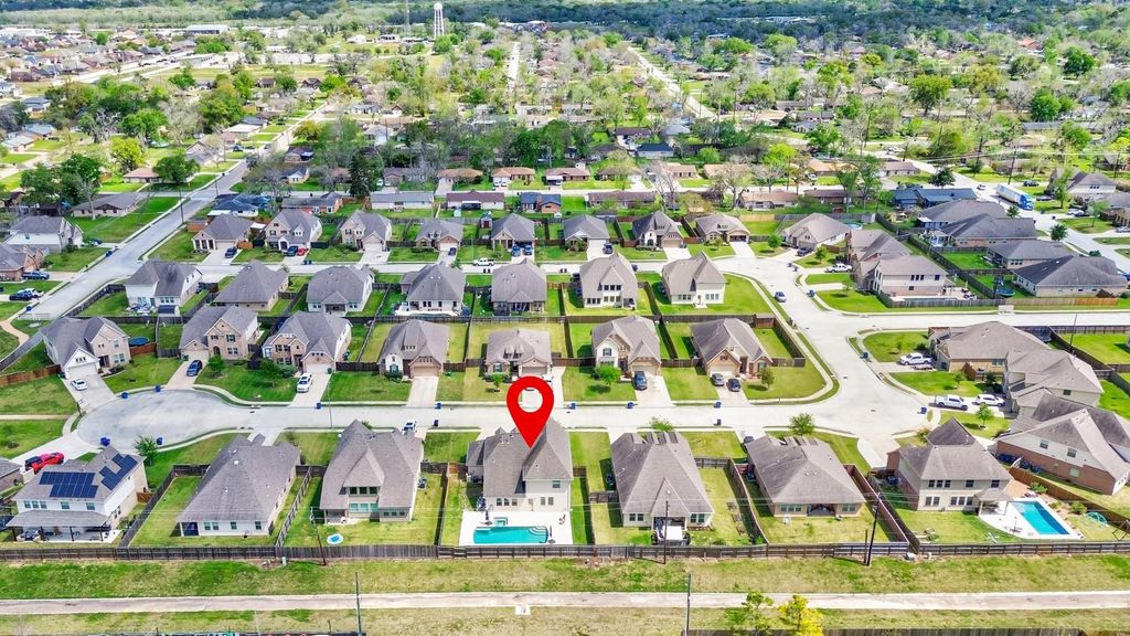 Welcome to a home designed for real life—where the kitchen is the heart of it all and the backyard feels like your own private retreat. Enjoy open-concept living with seamless views from the front door to the pool, creating a true indoor-outdoor connection. The oversized kitchen island is perfect for gathering, while five spacious bedrooms—including a private primary suite—offer room for everyone. Step outside to a heated pool and spa with a rare 7-ft deep end, extended decking, and stunning sunset views over open green space with no rear neighbors. Loaded with upgrades including dual HVAC systems, two water heaters, gas fireplace, generator hookup, and pre-wired connectivity—this home was built for comfort, efficiency, and everyday living.