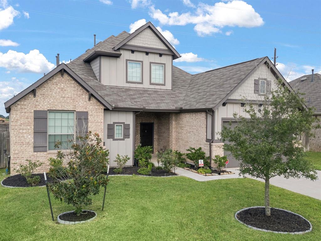 BEAUTIFUL BRICK ELEVATION upon arrival to this STUNNING 2 Story Home with 4 Bedrooms & 3 Full Bathrooms situated in the highly-sought after community of Seabourne Landing in Rosenberg! Luxurious Living Room with tile flooring, high ceilings and oversized windows providing tons of natural lighting. Spacious Breakfast Area to entertain guests. Gourmet Kitchen with island, Breakfast Bar for additional seating and an abundance of storage and cabinet space. Primary Suite with plush carpet and Spa Like Bathroom to retreat to after a long day. Private Secondary Bed & Bath on main floor, great for multigenerational living. Spacious Secondary Bedrooms & Bathroom upstairs with Flex Space! Indoor utility room to ensure laundry is a breeze. Covered Patio out back with Greenspace & Luscious Landscaping with NO BACK NEIGHBORS and upcoming LAKEVIEW! Conveniently located near Meyer Elementary School! Nearby shopping, dining and more! **Seller May Contribute to Buyer Expenses**