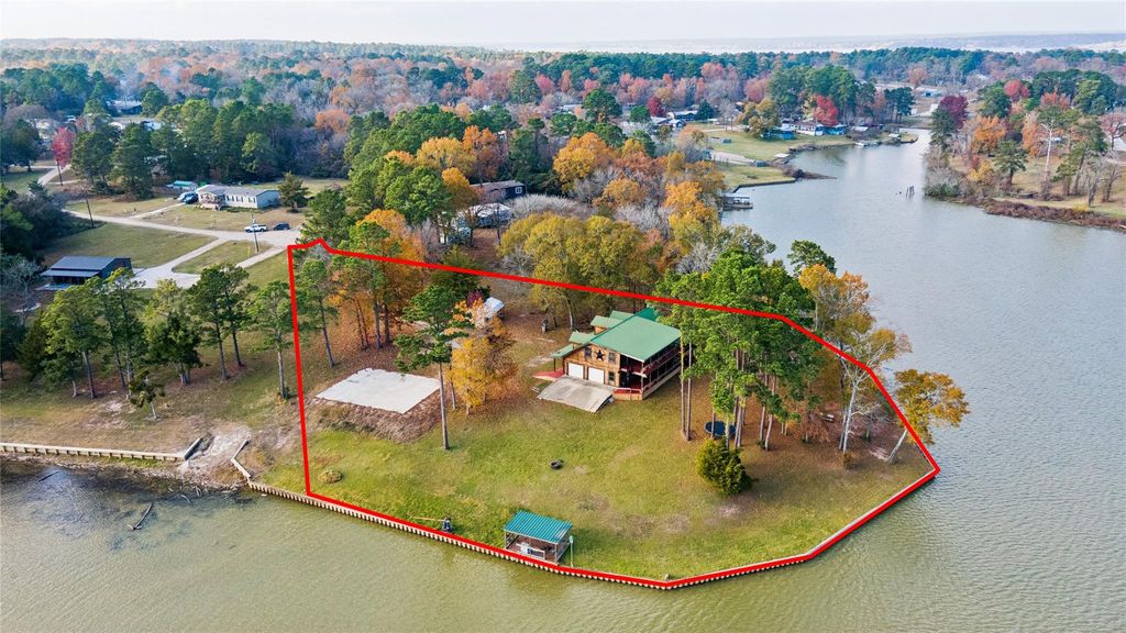 Escape to the charm of this log cabin inspired home nestled in the heart of Trinity, where rustic character meets scenic waterfront living. The open-concept layout is enhanced by soaring vaulted ceilings that create an airy, inviting atmosphere, while expansive windows frame tranquil water views and stunning natural surroundings. Outdoor living takes center stage with a spacious covered patio below and a second covered patio above, connected by a striking spiral staircase that adds both style and function. The property extends to the water with 500ft of bulkhead and a fishing pier offering endless enjoyment right from your own backyard. An additional storage shed and a concrete pad provide flexible space for hobbies, equipment, or future ideas, all surrounded by mature trees and peaceful views. Whether envisioned as a serene retreat, short-term rental, or a full-time residence, this setting invites you to slow down and enjoy the lifestyle. Schedule your private tour today!
