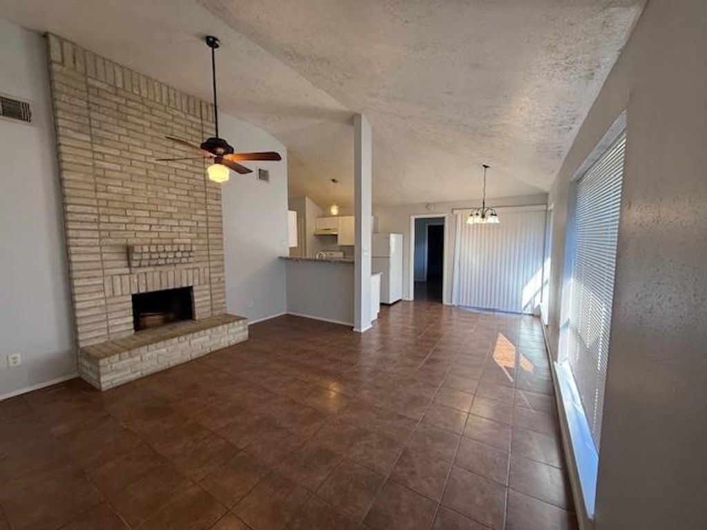 $200 off 2nd Months Rent. Perfect 2/2 duplex with High Ceilings, Fireplace, Great Open Floor perfect for entertaining. Fresh paint inside, NEW tile & blinds throughout. Kitchen comes with all appliances. Walk-in closets, Double Sinks in Primary Bath, Inside Utility Room. Fully Fenced Private Backyard and own side parking spaces. Close to major highways and the airport.