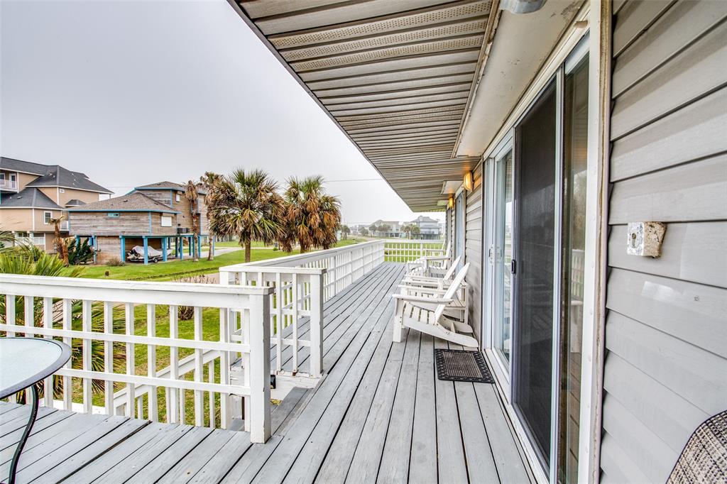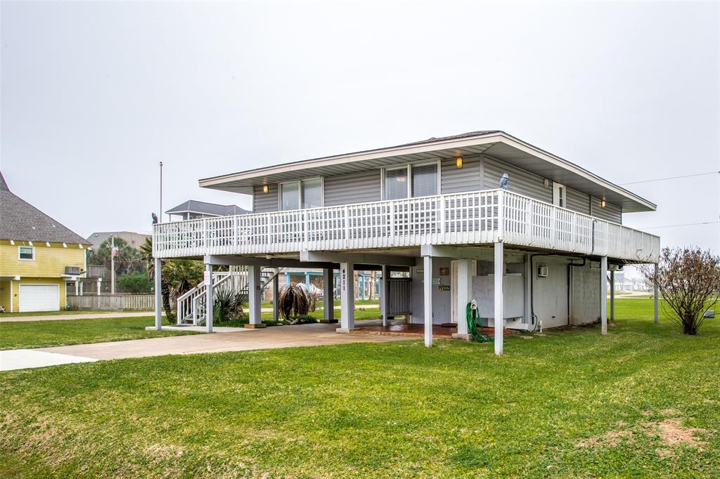 Enjoy beach and gulf views from the decks of this super charming classic beach home in popular Pirates Beach. Plank wood look but easy care vinyl flooring united this open floor plan and flows through the bedrooms as well. This is a rare 3 bedroom, 3 bath home with all bedrooms having a private bath in the main house and with a 4th bedroom and bath at ground level. There is a handy outdoor shower from coming in from the beach, a storage shed for all your beach toys and surf boards, storm shutters, wrap around porch decks with fabulous views, spacious breezeway under house, large lot and plenty of parking on a cul de sac. The kitchen was updated in 2013, fresh painting, removed old paneling and sheetrock, new AC condenser May 2020, AC for downstairs suite in 2020, Roof 2016. Offered fully furnished and turn key ready to enjoy. Often short term rented so check for appointment availability. Recently rezoned to flood zone AE for low flood insurance rates! offer deadline 4/15, 3pm