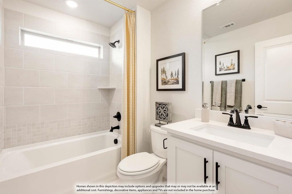 NEW! NEVER LIVED IN BEFORE! Ready May 2026. This stunning north-facing J-swing Seaberry II by Bloomfield Homes offers an impressive blend of luxury, function, and architectural detail. Featuring 4 bedrooms and 4 full baths, this open-concept design includes a butler’s pantry, formal dining room, and a dedicated study with glass French doors. Upstairs, enjoy both a media room (surround-sound pre-wire, no speakers installed) and a game room with vertical railing overlooking the living area below. The spacious family room is anchored by a floor-to-ceiling stone fireplace with a warm cedar mantel, creating a dramatic focal point. The deluxe kitchen is a chef’s dream with double ovens, upgraded quartz countertops, champagne cabinet bar pulls, upgraded backsplash, under-cabinet lighting, a single-bin trash pull-out, and a striking 8' front door that elevates the entry. Beautiful engineered wood flooring flows through the main downstairs areas, adding warmth and sophistication. Outdoor features include a gas stub at the covered patio, two double floodlights in the backyard, and six up-lights highlighting the stone and brick elevation for stunning nighttime curb appeal. A rare combination of thoughtful design and premium upgrades, this home delivers comfort, style, and standout craftsmanship. Visit Liberty Model today to learn more about the Seaberry II floor plan by Bloomfield Homes.
