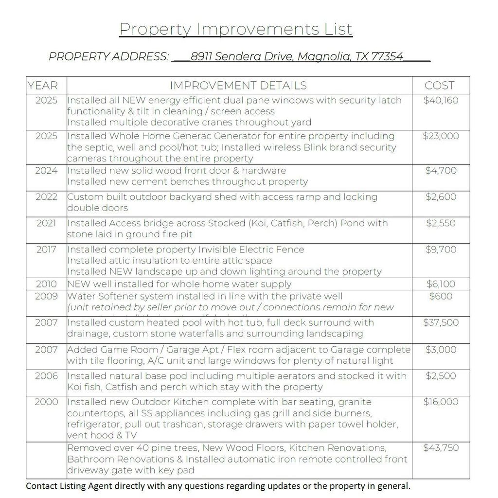 Experience TX living done right in an equestrian community. Begin the day w/ coffee on the wraparound porch/covered patio as the sun rises on 2+ acres, w/ peaceful views of the pond & open space. Evenings invite time outdoors—sunsets by the pool/spa, gatherings around the fire table & meals prepared in the fully equipped outdoor kitchen. This home makes creating memories w/ loved ones effortless. The stocked Koi & Catfish pond adds a unique tranquil touch. A fully fenced with an auto-gated driveway, includes RV garage w/ interior 220V hookup, water, & sewer connections supporting travel-ready convenience. Inside, high ceilings, solid wood cabinetry, custom built-ins, & private office provide functionality, while recent updates include energy-efficient windows, renovated bathrooms, upgraded flooring & more. An adjacent flex/game room offers additional space for recreation/2nd office/guest room/hobbies opportunity. Here's a rare blend of land, function, & outdoor living U shouldn't miss!