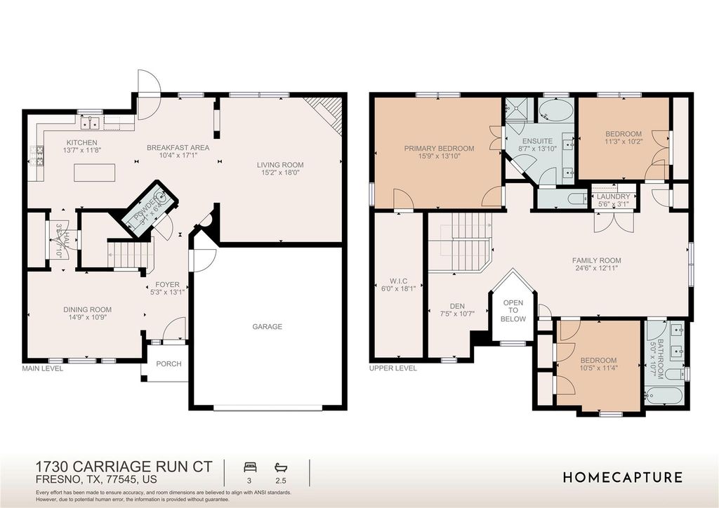 Welcome home to 1730 Carriage Run Court, located in the established community of Teal Run Meadows and zoned to HISD. This well-maintained two-story home features 3 bedrooms and 2.5 bathrooms with a functional layout designed for everyday living. The main level offers a welcoming foyer, formal dining room, spacious living area filled with natural light, and a kitchen that opens to the breakfast area and living room, perfect for entertaining. A convenient powder bath is located downstairs. Upstairs, the primary suite includes an ensuite bath with soaking tub, separate shower, and walk-in closet. Two secondary bedrooms share a full bath, while the upstairs family room and den provide flexible space for a game room, home office, or media area. Refer to the floor plan for layout. Conveniently located near major roadways, shopping, and dining. Schedule your showing today!