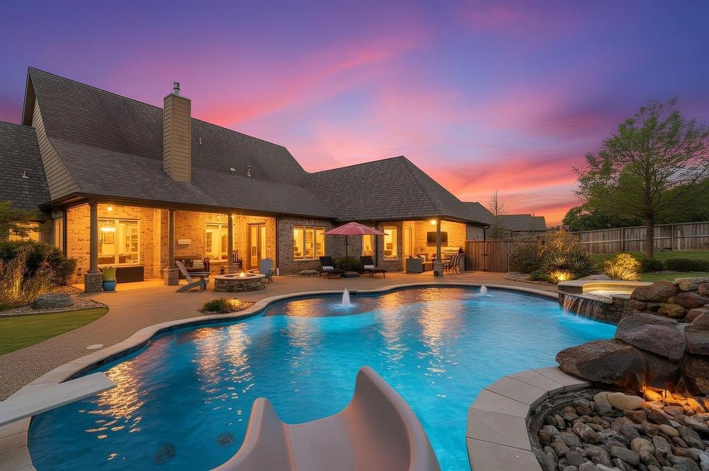 Exceptional custom residence in gated Hillcrest Trails, zoned to award-winning Hallsville ISD. Built by Newland Properties, this 4,129 SF home on .8 acres blends timeless design with effortless luxury. The chef's kitchen is thoughtfully appointed with double ovens, gas cooktop, warming drawer, and a generous pantry. The private primary suite on the main level offers a true retreat with a spa-inspired bath and dual walk-in closets. Additionally, there are two other bedrooms, a full bath and a powder room downstairs . Upstairs, a spacious bonus room, bedroom, and full bath provide ideal flexibility for guests or additional living. Enjoy your favorite tunes on the integrated speakers extending seamlessly throughout the main living area, kitchen, primary suite, and outdoor spaces. The outdoor experience is equally impressive, featuring a resort-style pool and expansive entertaining area complete with grill, burners, refrigerator, and fire pit. A 4-car garage with epoxy finish includes extra space for a golf cart or lawn equipment. Enhanced with foam insulation, water well for irrigation (offering a huge savings on your Tryon Road water bill), and refined guest bath finishes. Offered at an outstanding value, this is a rare opportunity to own a beautifully designed, amenity-rich home in one of Longview's most sought-after gated neighborhoods.