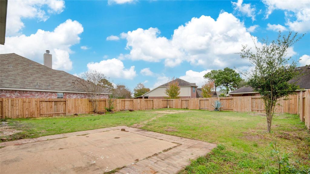 Beautiful 5-bedroom home featuring a convenient mother-in-law suite on the first floor. The expansive primary suite offers a private sitting area, double vanities, a jetted tub, separate shower, and dedicated dressing space. The open kitchen boasts a tile floor, stylish backsplash, granite countertops, and 42" cabinetry. Abundant windows throughout provide natural light and are finished with 2" blinds. A grand staircase with rich wood spindles creates an elegant focal point. The backyard is perfectly sized and ideally suited for a future pool.